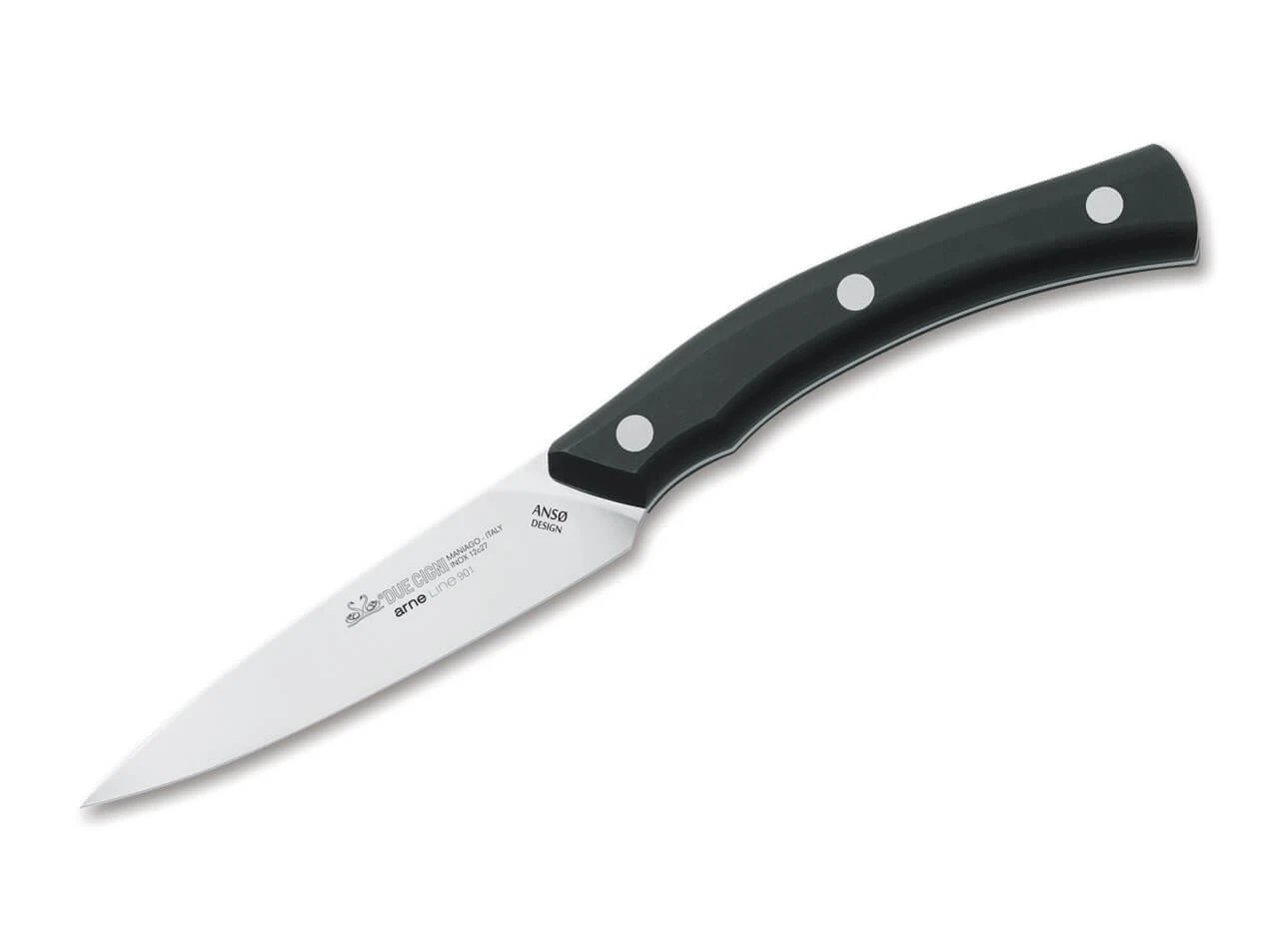 Die Küchenmesserserie Arne von Jens Ansø kombiniert gekonnt dänisches Design und italienische Lebensart. Die schön geschwungenen Griffe warten mit einer perfekten Ergonomie auf und erlauben langes ermüdungsfreies Arbeiten. Die Vollerl-Messer sind aus Sandvik 12C27 gefertigt und hier anstelle der Ziricoteholz-Beschalung mit robustem HPL-Kunststoff ausgestattet.