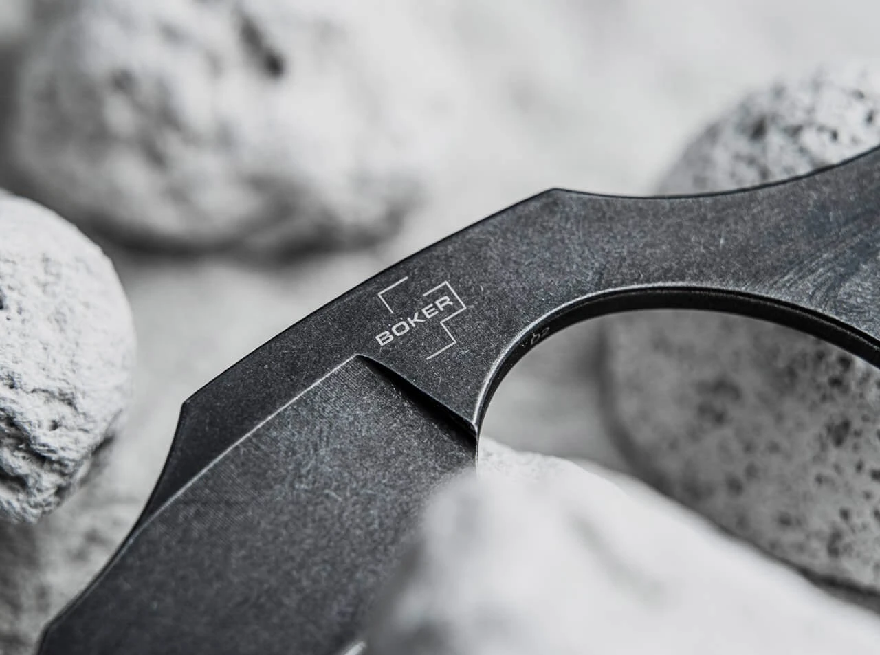 Der aufstrebende deutsche Messerdesigner Simon Frömel ist bei Böker kein Unbekannter. Bereits mit dem Böker Plus Rescue Kiridashi konnte er in der Vergangenheit für Furore sorgen. Sein nächster Coup ist gewiss: das Böker Plus Bad Moon ist ein feststehendes Karambit-Messer mit minimalistischer Anmutung und maximaler Funktionalität. Die Ganzstahlkonstruktion ist mit einer Hawkbill-Klinge aus äußerst schnitthaltigem D2 ausgestattet, deren Linien sich im geschwungenen Griff fortsetzen und dadurch eine sehr effiziente Nutzung garantieren. Garniert ist das gesamte Messer mit einem Dark-Stonewash-Finish. Typisch für diese Messerart ist der große Ring am Griffende, der eine sichere Handlage garantiert und auch als Fangriemenöse verwendet werden kann. Lieferung mit maßgeschneiderter Kydexscheide und Kugelkette zur Verwendung als Neck Knife.