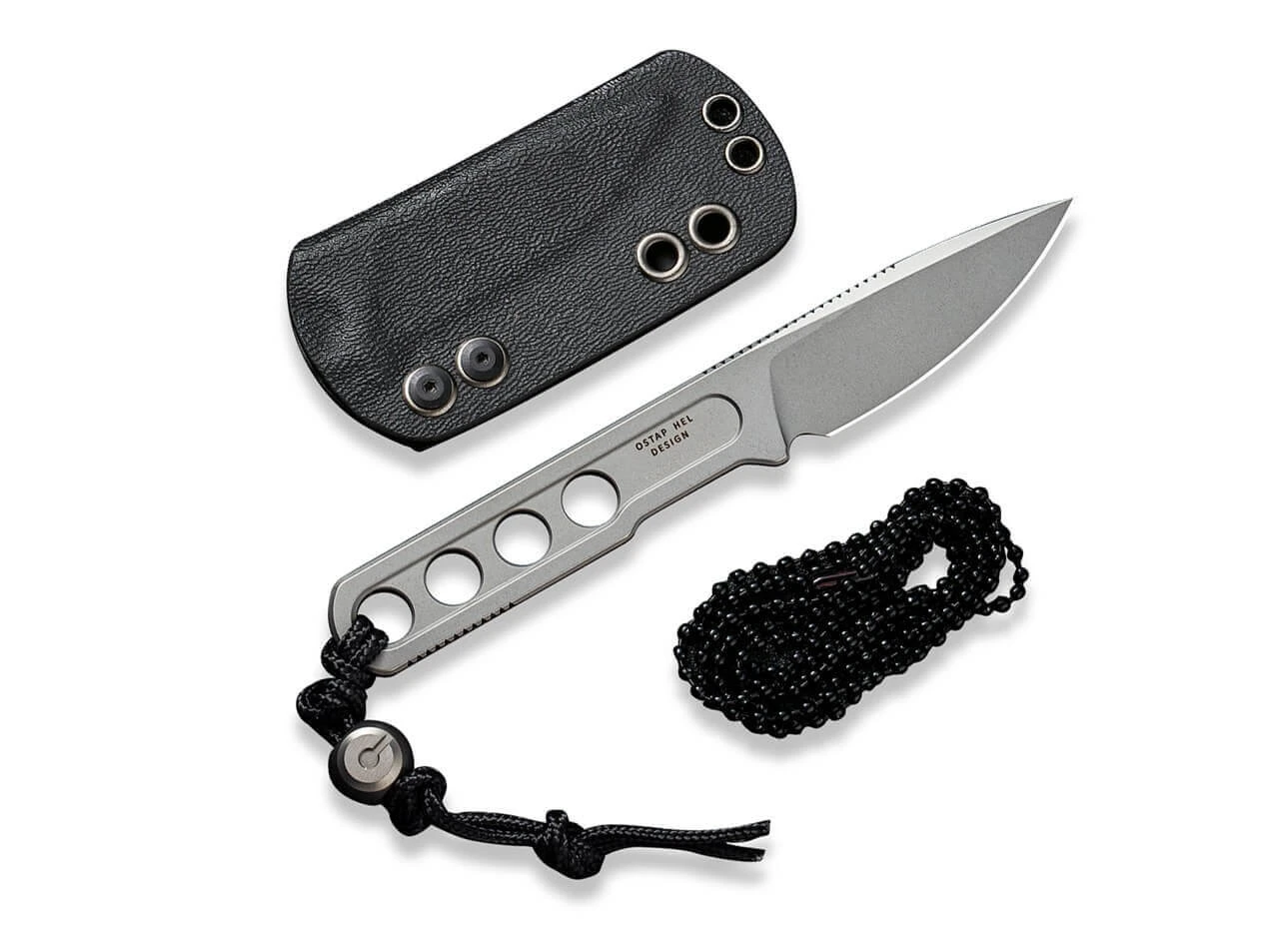 Taktisch praktisch: Das kompakte Neck Knife von Ostap Hel hinterlässt im Alltag einen souveränen Eindruck und vereint minimalistisches Design mit kompromissloser Performance. Die Ganzsstahlkonstruktion aus 10Cr15CoMoV mit flachgeschliffener Droppoint-Klinge erledigt selbst schwierige Einsätze mühelos. Der Edelstahlgriff ist mit vier großen Aussparungen versehen, die das Gewicht reduzieren, die Haptik verbessern und viele Befestigungsvarianten erlauben. Riffelungen am Griff und Klingenrücken erhöhen die Arbeitssicherheit zusätzlich. Mit passgenauer Kydexscheide und Kugelkette.