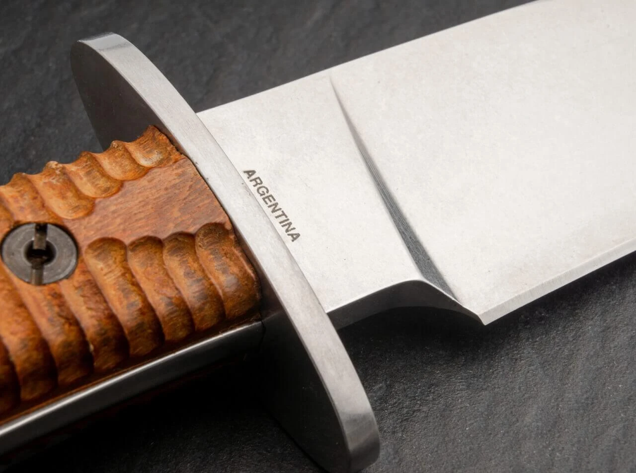 Die massive Bauweise in Kombination mit der klassischen Optik und dem hohen Gebrauchswert machen das Böker Arbolito Esculta, die kompaktere Version des El Gigante, zu einem ausgezeichneten Begleiter für Outdoor und Jagd. Die Griffschalen aus Guayacan–Ebenholz sind mit einer zusätzlichen Rillenstruktur versehen und so an Griffigkeit nur schwer zu überbieten. Die massive Klinge aus Böhler N695–Stahl läuft komplett durch den Griff und verjüngt sich zum Griffabschluss. Der sogenannte Tapered Tang verleiht dem Messer eine besondere optische Note und balanciert es optimal aus. Der ausladende und kräftige Handschutz aus gebürstetem Edelstahl verspricht hohe Arbeitssicherheit und trägt zum edlen Erscheinungsbild bei. Lieferung mit hochwertiger Lederscheide für hohes oder tieferes Tagen.
