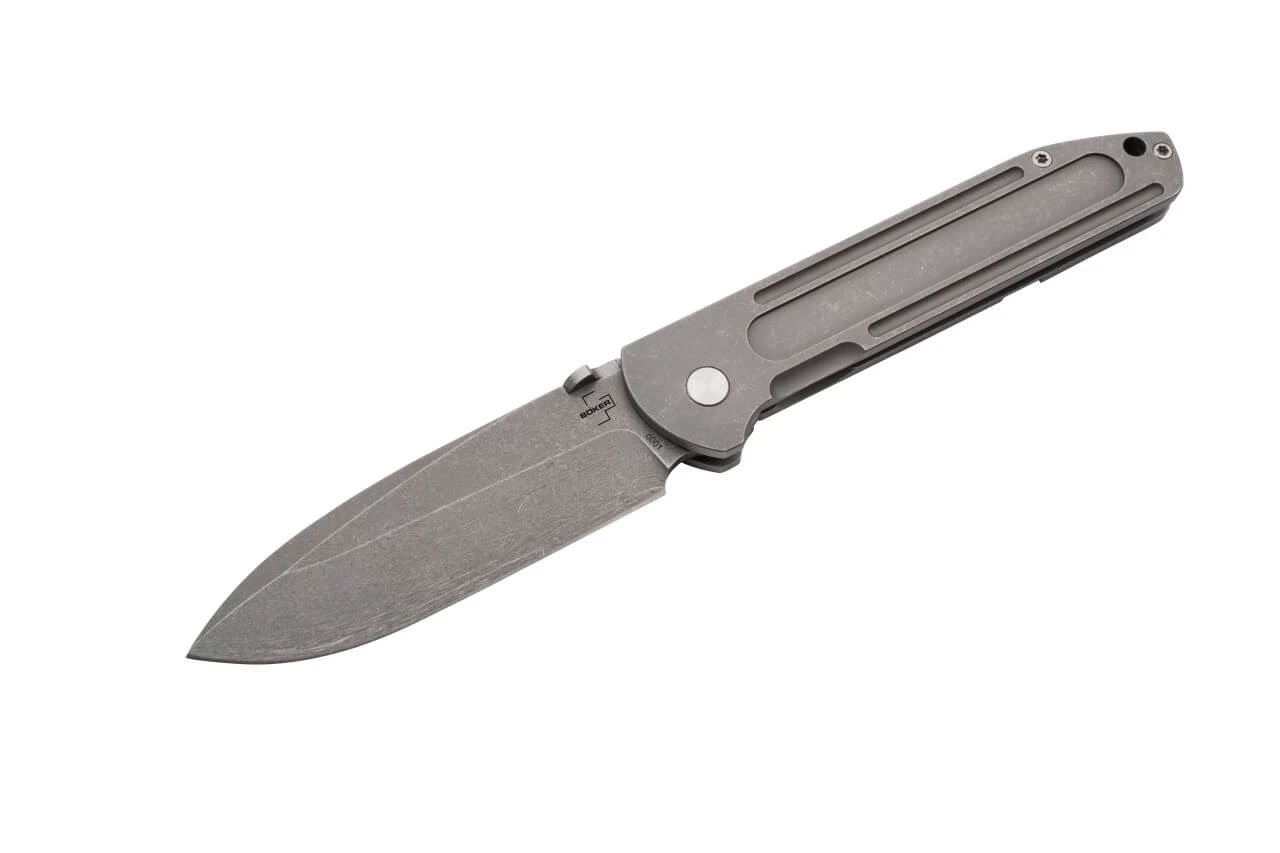 Der Blick für das entscheidende Detail, vollendete Handwerkskunst und eine klar definierte Formensprache: Das Böker Plus Evade trägt die Handschrift des Messerdesigners Serge Panchenko und entflieht auf den ersten Blick dem üblichen Verständnis eines klassischen EDC Messers. Die wuchtige Drop-Point Klinge aus D2 öffnet per Daumenscheibe und wird zuverlässig von einem Frame Lock arretiert. Der zweite Blick offenbart eine kompromisslose Performance für alle Schneidarbeiten des Alltags. Das Stonewash-Finish über das gesamte Messer hinweg sorgt für den kernigen Look. Präzision und Stabilität sind die integralen Bestandteile des Edelstahlgriffs, dessen Schalen und Clip (Tip-Up/r) aus dem Vollen gefräst sind und mit den länglichen Aussparungen den industriellen Charme des Evade unterstreichen. Typisch Panchenko ist die praktische Mulde auf der vorderen Griffschale, die das Öffnen des Klappmessers erleichtert und einen Hauch Leichtigkeit versprüht.