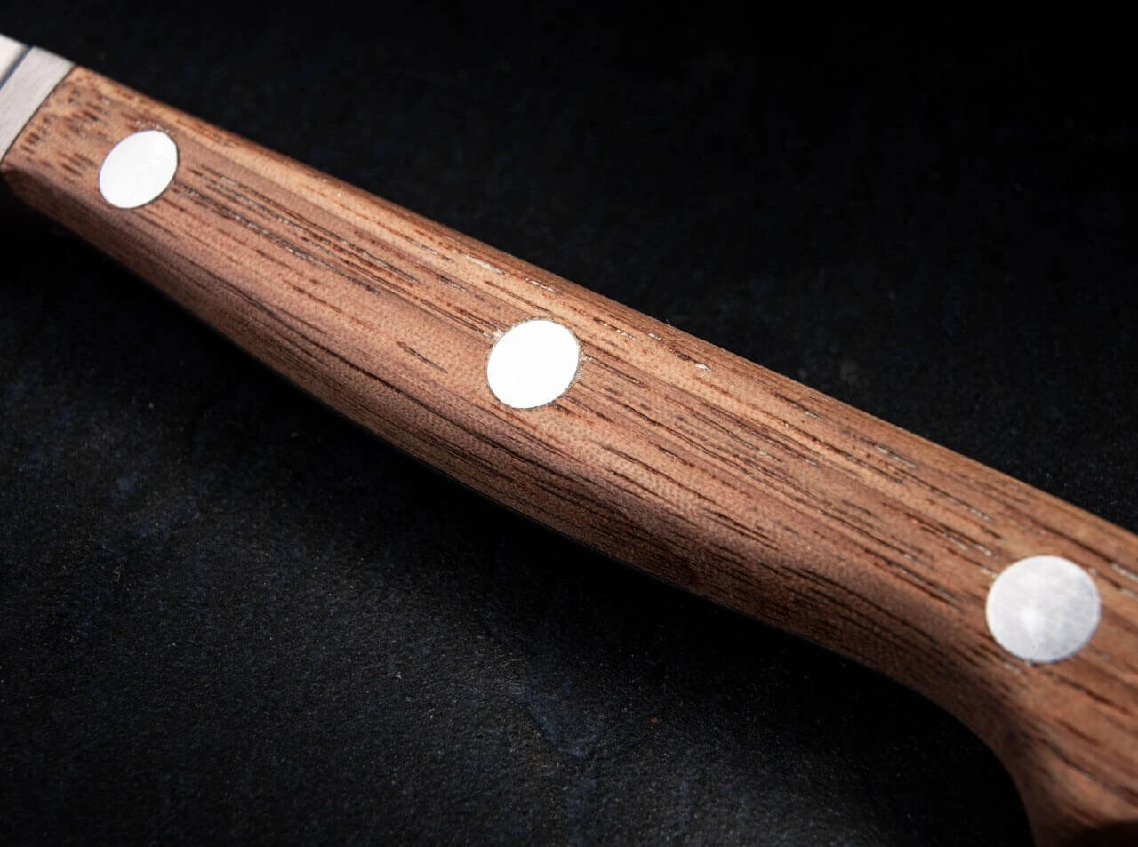 Die geschmiedete Kochmesser-Serie Böker Heritage macht ihrem Namen alle Ehre und tritt das Erbe der traditionellen Solinger Kochmesser an. Das klassische Drei-Nieten-Design wird dafür mit hochwertigen Materialien ausgestattet und führt die perfekte Verarbeitung fort, durch die Solinger Schneidwaren in den letzten Jahrhunderten auf der ganzen Welt bekannt geworden sind. So werden die Klingen der außergewöhnlichen Messer in Vollerl-Bauweise aus X50CrMoV15 gefertigt, der ein ausgewogenes Verhältnis von Schnitthaltigkeit, Rostträgheit und guter Nachschärfbarkeit bietet. Durch die aufwendige Schmiedung in Solinger Handarbeit wird der massive Klingenrohling zusätzlich im Gefüge optimiert, anschließend auf ungefähr 58 HRC gehärtet und zuletzt mit einem feinen Satin-Finish versehen. Die ergonomisch geformten Griffe aus heimischem Walnussholz liegen sehr angenehm in der Hand und vervollständigen das stimmige Gesamtbild. Der geschmiedete Kropf bietet jederzeit einen sicheren Griff, schützt wie der integrierte Knauf vor möglichen Verletzungen und sorgt für eine perfekte Balance.
