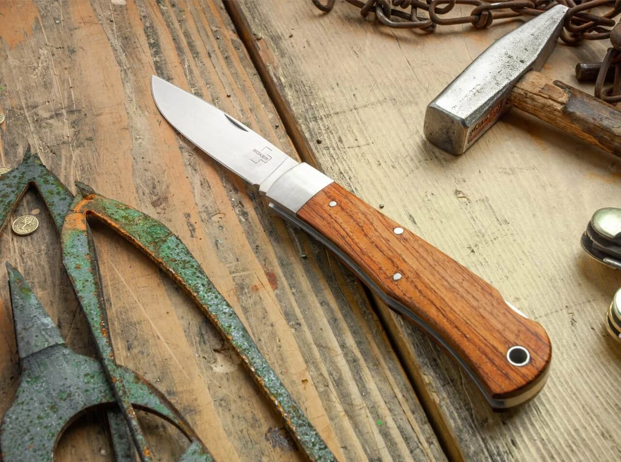 Das Böker Plus Lockback überzeugt mit klassischer Anmutung und hohem Nutzwert und beeindruckt mit seinem seidenweichen Klingengang und sauber eingepassten Holzschalen, die von gebürsteten Edelstahlbacken abgeschlossen werden. Der traditionelle Nagelhau ermöglicht ein komfortables Öffnen, die Klinge wird aus 440C gefertigt. Die Beschalung aus Bubingaholz und die polierte Klinge lassen das Messer in Vitrine und Alltag eine Sonderstellung einnehmen.