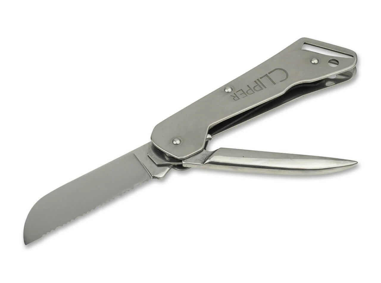 Das solide Boots- und Seglermesser von MAC in Ganzstahl-Ausführung ist mit einer Sheepfoot-Klinge mit bissigem Wellenschliff ausgestattet. Zusätzliche verfügt es über einen Marlspieker mit integriertem Flaschenöffner.