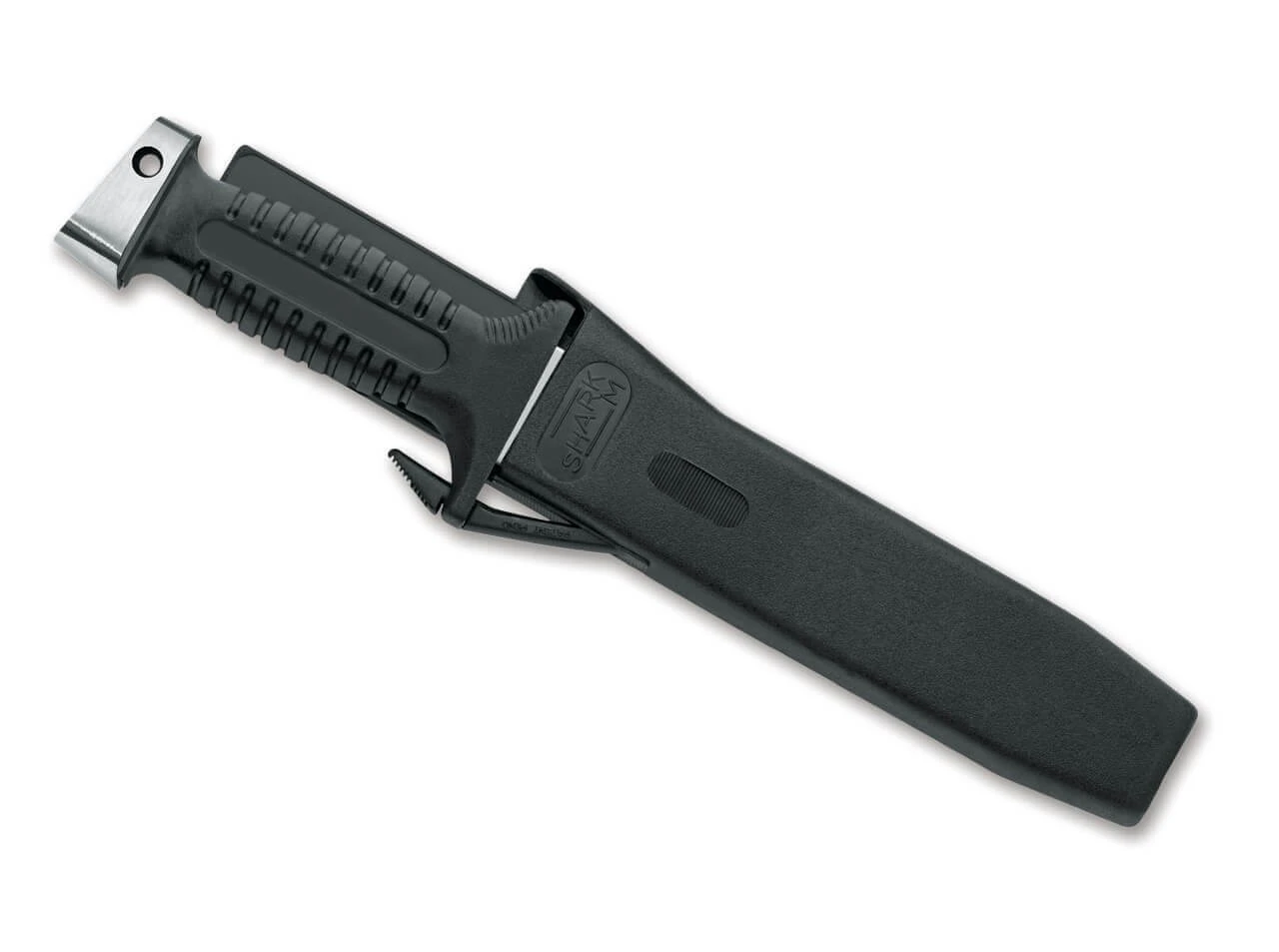 Das professionelle Tauchermesser Shark M von MAC ist mit einer Klinge aus 4116 ausgestattet, die zusätzlich über einen bissigen Wellenschliff und einen Gurtschneider verfügt. Der schwarze Griff aus rutschfestem Polypropylen liegt auch unter Wasser sicher in der Hand. Lieferung mit Polypropylen-Scheide mit Gummibändern für Beine oder Arme.