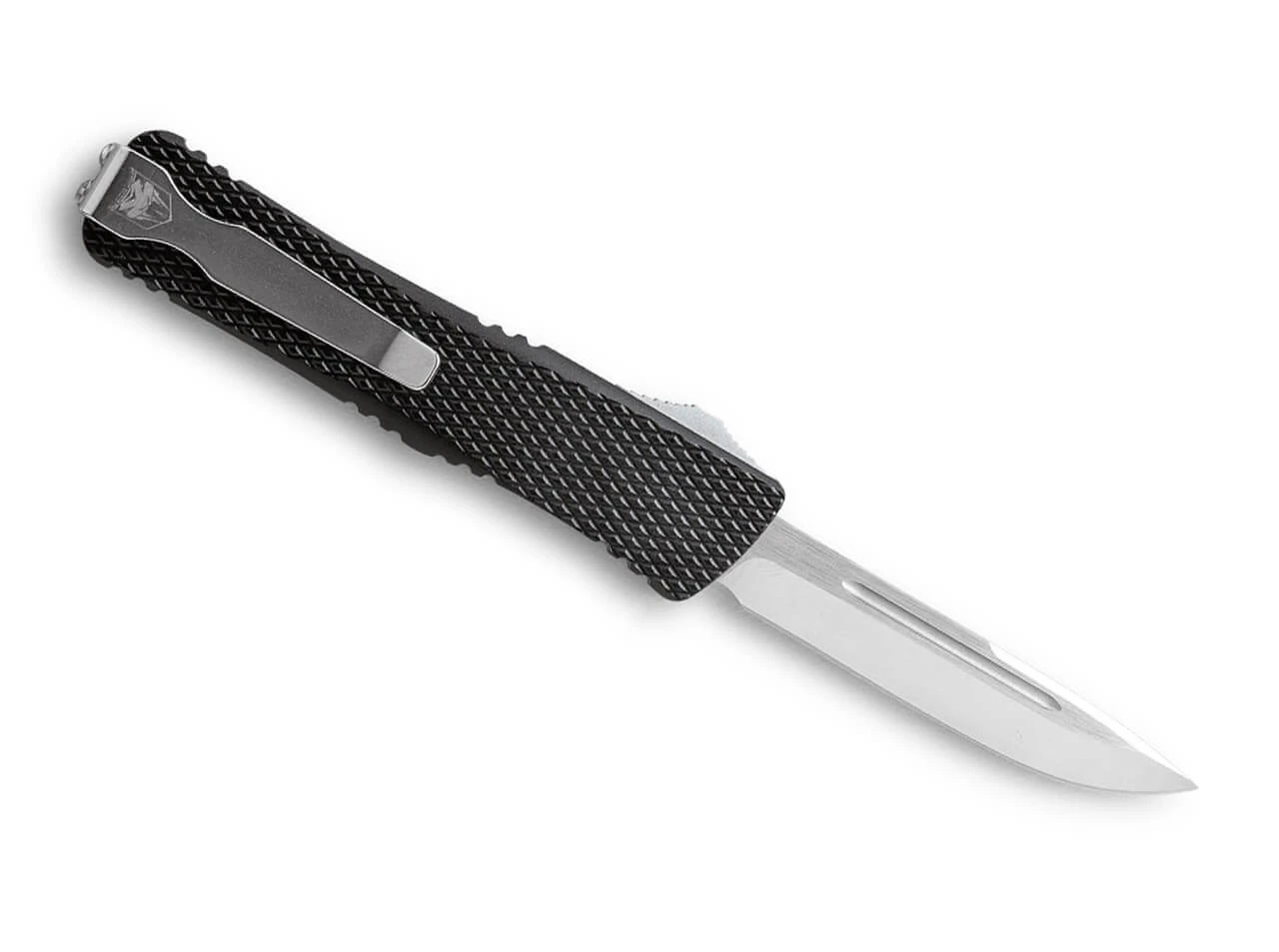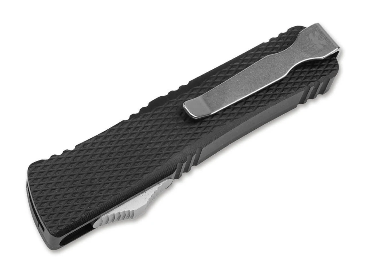 Das CobraTec Mini Mamba ist ein extrem leichtgewichtiges, kleines OTF-Messer mit einer satinierten Droppoint-Klinge aus D2. Der texturierte Griffkörper wird aus leichtgewichtigem Aluminium gefertigt und liegt auch bei Nässe stets sicher in der Hand. Mit umsetzbarem Clip (Tip-down/l-r) und praktischem Gürteletui aus Nylon.