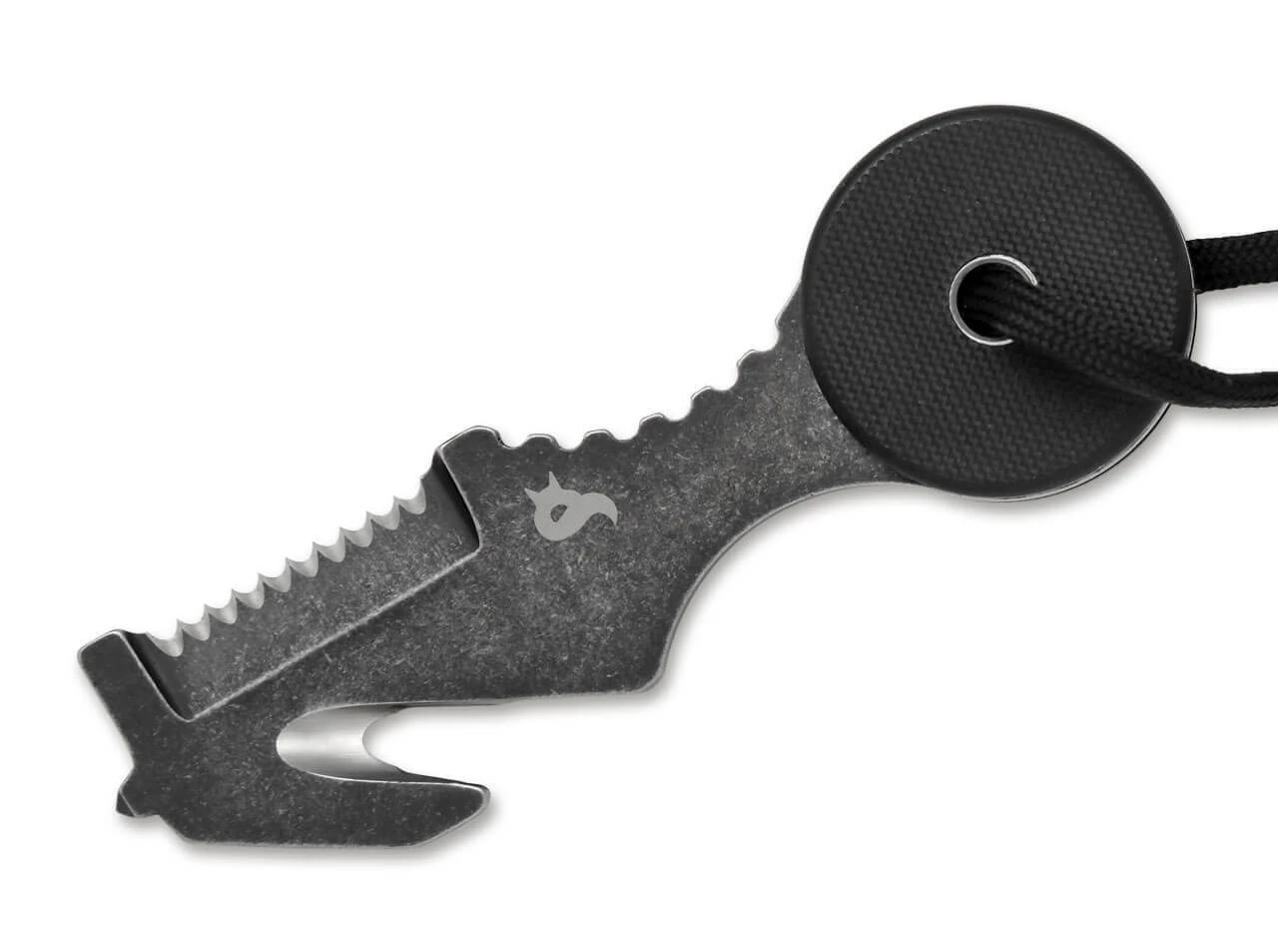 Es gibt immer einen Ausweg – so lautet das selbstbewusste Motto des BlackFox Plan B. Das kompakte Rettungsmesser ist spezialisiert auf brenzlige Situationen und überzeugt mit seiner soliden Grundausstattung aus Gurtschneider, einem gezahnten Klingenrücken sowie einem Glasbrecher. Das runde G10 Element am Griffende verspricht sicheren Halt. Mit passgenauer Kydexscheide.