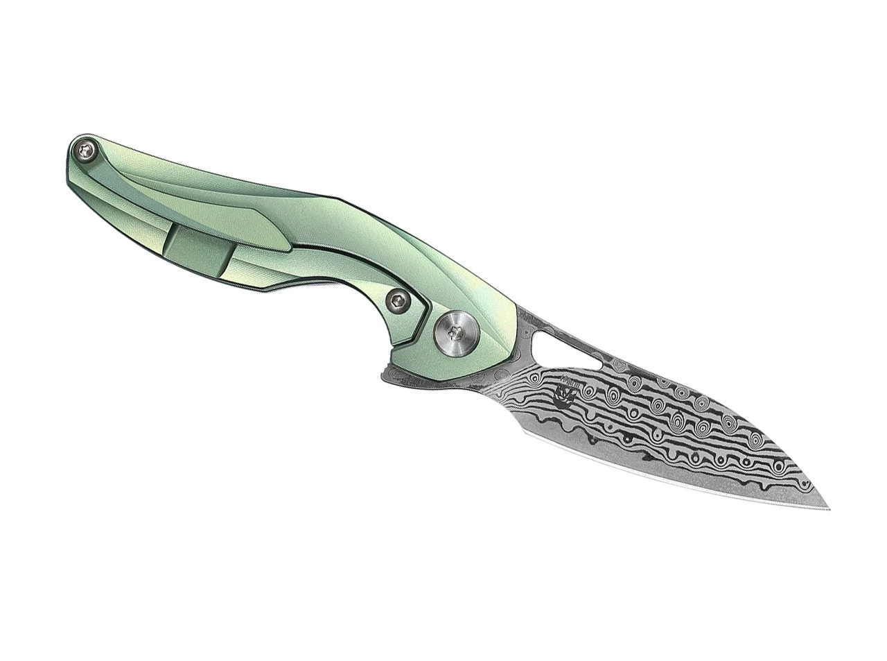 Ein weiterer Hingucker bereichert das Sortiment von Bestech. Das extrem handliche Reticulan von Elijah Isham ist mit einer außergewöhnlicher Damastklinge und einem schimmernden, grünem Titangriff ausgestattet. Der Griff begeistert mit einer schlanken, geschwungenen Linienführung, einer aufwendig gefrästen Oberfläche und einer tiefen Fingermulde. Die Klinge lässt sich per Daumenöffnung oder Flipper öffnen und wird von einem stabilen Framelock arretiert. Das moderne Taschenmesser verbindet ein futuristisches Design mit hochwertigsten Materialien. Das Messer kann dank der beiligenden Kydex-Scheide auch als Neck Knife getragen werden. Mit Clip (Tip-up).