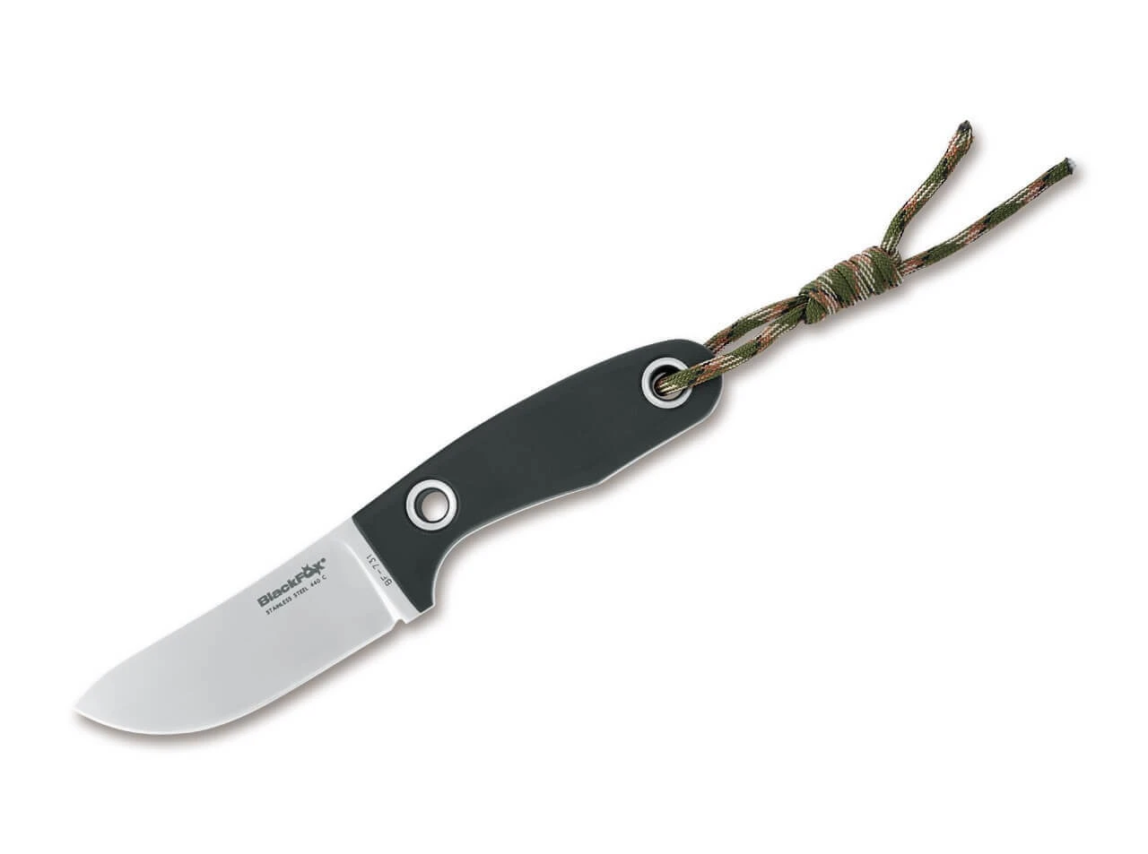 Ein durch und durch funktionales Outdoor- und Bushcraft-Messer in moderater Größe präsentiert Black Fox mit dem Viator. Die vielseitige Drop Point Klinge aus rostfreiem 440C–Stahl bietet einen guten Kompromiss aus Schnitthaltigkeit, Zähigkeit und unkomplizierter Nachschärfbarkeit, was besonders in der Natur wichtig ist. Die robuste Flachangelkonstruktion mit den großen Hohlnieten bietet eine Vielzahl kreativer Befestigungs- und Nutzungsmöglichkeiten in Survival-Situationen. Lieferung mit passender Kydexscheide und Gürteladapter.