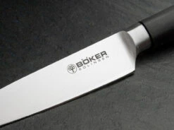 Die außergewöhnliche Kochmesser-Serie Böker Yadama Premium verbindet klassische Formgebung mit eindrucksvollen Damastklingen und wird so zu einem wahren Blickfang in jeder Küche. Die dank Vollerl-Bauweise überaus stabilen Messer sind optimal ausbalanciert und liegen angenehm in der Hand. Ergonomisch geformte Griffschalen aus rutschfestem Micarta werden klassisch mit zwei Edelstahlnieten dauerhaft und ohne Fugen mit dem vollständig durchgehenden Messererl verbunden. Die Gestaltung der Klingen samt Übergang zum Kropf erlauben ein problemloses Nachschärfen und gewährleisten in Kombination mit der richtigen Pflege eine langfristig perfekte Funktion der Messer.